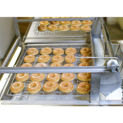 Glazer with EZLift applicator, glazes donuts at a time with less lifting.