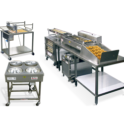 Automated fryer for extra fast production of mini donuts. Capacity 151 dozen/hour, with electric power and heat.