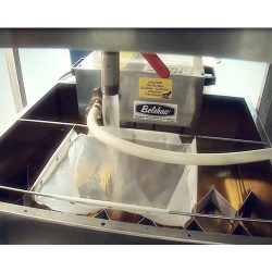 Fast, effective filtration for Open Kettle fryers and Donut Robot® Mark II-Mark V. Melts, filters and tops up fryer shortening.