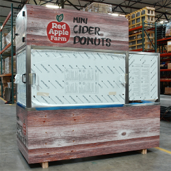 On the outside, a unique merchandizing system for making and selling donuts. On the inside, a sophisticated system with multiple clean air filters. And it operates from a single plug.
