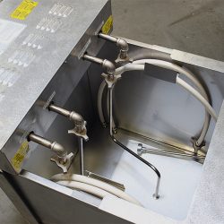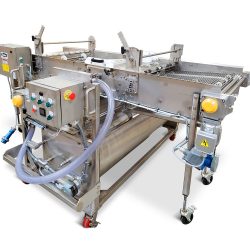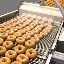 Belshaw’s industrial glazer with heated glaze reservoir, for donut lines 6, 8 or 10 donuts wide.